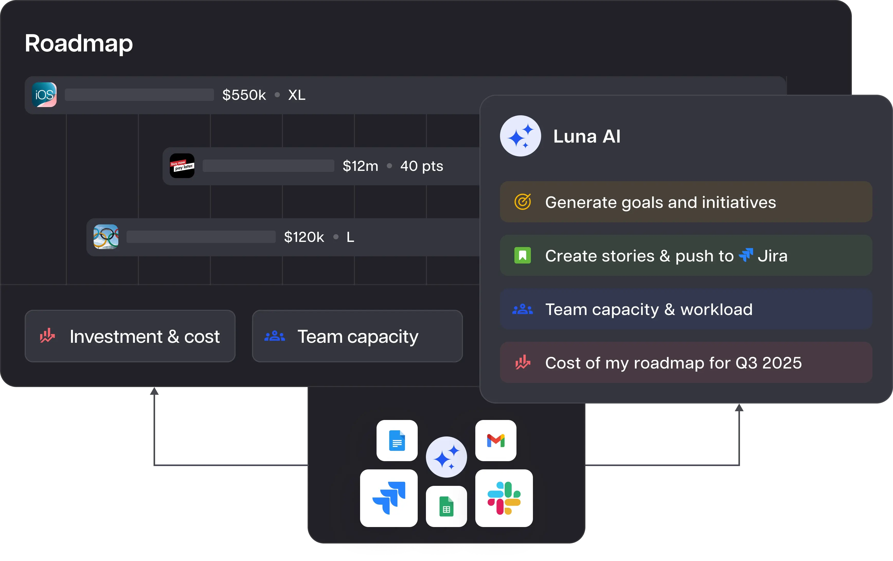 Make smarter tradeoffs faster, using RICE or your own metrics like revenue or cost. Luna AI adapts to your framework.